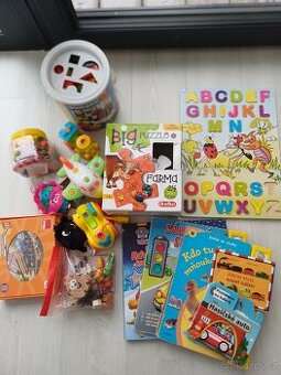 Prodám sadu hraných hraček, určitě ještě udělají radost.V dřevěné abecedě chybí písmeno. Cena za vše