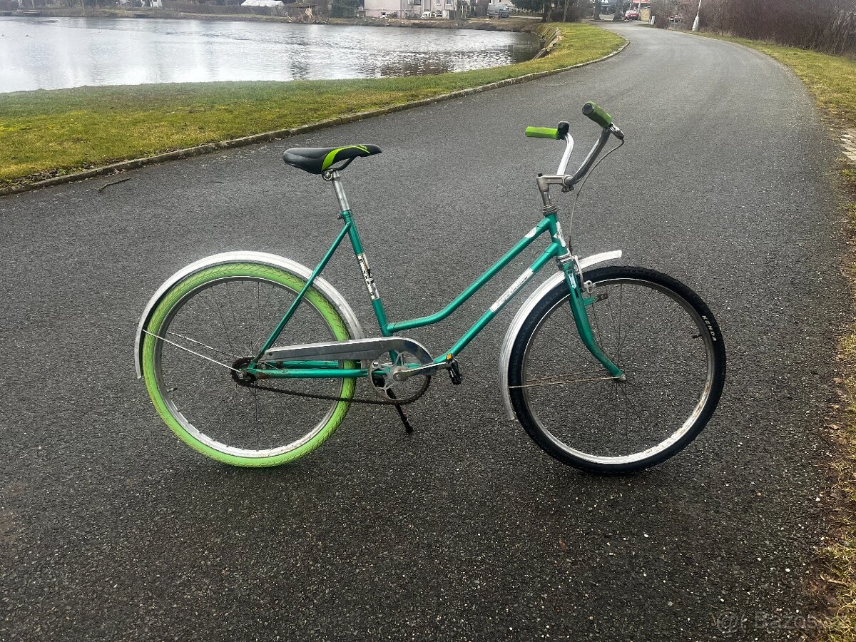 Prodám městské kolo v dobrém a plně funkčním stavu. Kolo má nové sedlo, gripy, pedály a nové pláště. Součástí kola je stojánek, blatníky a kryt na řetěz. Nemá žádné vůle a všechno funguje tak, jak má. Je pohodlné, vhodné na ježdění po městě, do práce nebo na kratší výlety. Stačí sednout a jezdit.