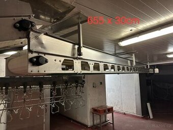 Prodám nerezový pásový dopravník. Délka 655 cm. Modulární pás s šířka 30cm. Určený pro styk s potravinami. 3 fázový motor. Možnost vystavení faktury. Při rychlém jednání možná dohoda.