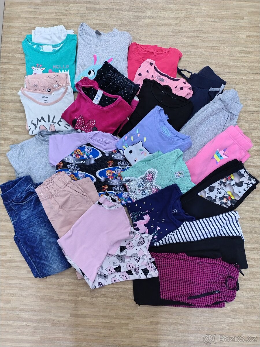 V balíčku najdete 22ks: 2x pyžamo,2x mikina, 1x svetr,1x domácí souprava s Minnie, 6x triko dl. rukav, 2x rifle, 1x sportovní kalhoty, 4x tepláky, 2x legíny, 1x prodloužené triko/šaty. Pouze jako celek, něco jako nové, něco na donošení. Posílám balíkovnou či zásilkovnou.