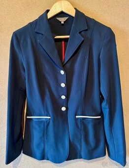 Tmavě modré sako jezdecké dámské Softshell Tattini z kvalitního prodyšného i pružného materiálu. Sako je extra pohodlné ve slušivém vypracovaném střihu. Dvě přední kapsy , bílý lem nad kapsami. Dešti i větru odolné.Dva zadní rozparky pro pohyb. Decentní logo na levém rukávu. Velikost italská 42 - sedí na velikost S/M. Párkrát použité,jako nové. Míry v cm: šířka ramen 39 délka saka bez límečku 62 Prosím SMS, odepíšu.
