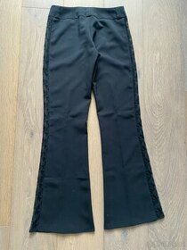 Dámské společenské kalhoty, ozdobný krajkový lem na boku, vel. XS/34, pas 36 cm, délka 97 cm.
