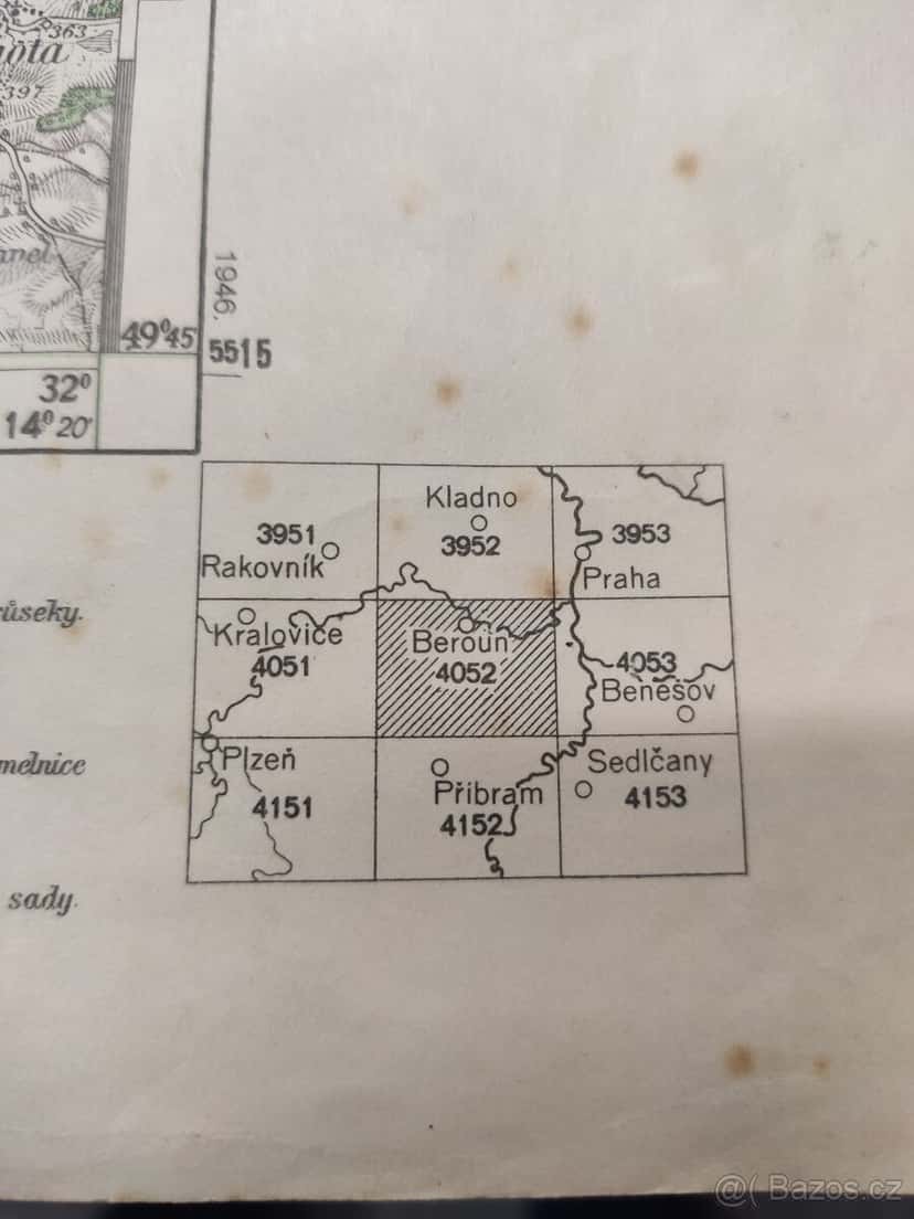 MAPA okr. BEROUN, 1 : 75 000, z roku 1946, stav viz foto. Osobní jednání - tel 606 752 298,