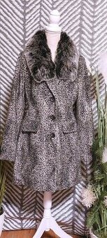 Krásný přechodový kabátek s efektem srsti levharta,kabátek je i tak plyšový - C&A - STYLE BY ...CLOCKHOUSE ...ELEMENTS - velikost L - materiál 100% polyester,kabátek i podšívka klouzavka ...Kabátek má jednořadé zapínání,dvě kapsy s klopou ...Délka od ramene dolů 85cm - rukáv od krku 74cm - prsa 2 x 50cm - pas 2 x 45cm - boky 2 x 60cm...Ke kabátku dávám límec z heboučké umělé kožešiny,límec má na podšívce drobná poutka pro případné přišití napevno...Kabátek je nový,bez visaček - budete li chtít kapsy používat,musíte párnout steh pod klopou... Kabátek je vhodný jako přechodový,praní doma je možné...Cena je včetně límce...