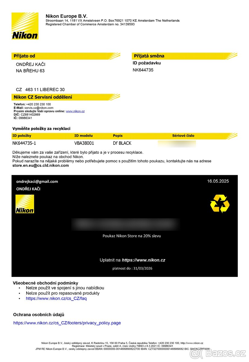 Sleva 20 % do Nikon Store – Originální voucher na novou techniku Prodám originální slevový kód ve výši 20 % na nákup v oficiálním e-shopu Nikon Store. Voucher jsem obdržel přímo od společnosti Nikon v rámci řešení reklamace. Protože jsem mezitím přešel na jiný systém, kód nevyužiji a rád ho přenechám dál.