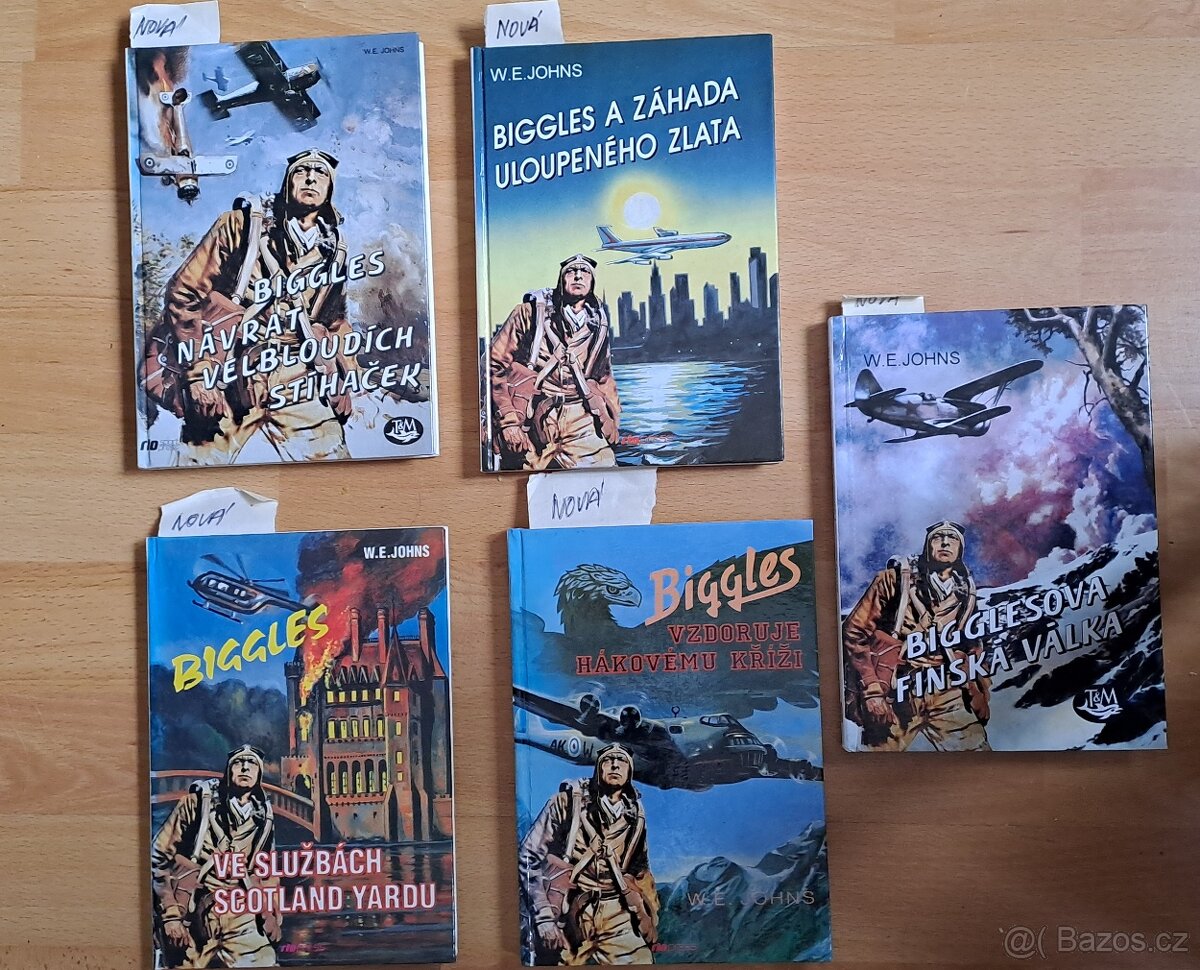 Pět zcela nových nečtených knih o Bigglesovi od velbloudích stíhaček, od autora Williama Earla Johnse. Výborný stav, viz foto. William Earl Johns byl anglický pilot, voják a spisovatel dobrodružných příběhů. Všechny za 370,- a poštovné.