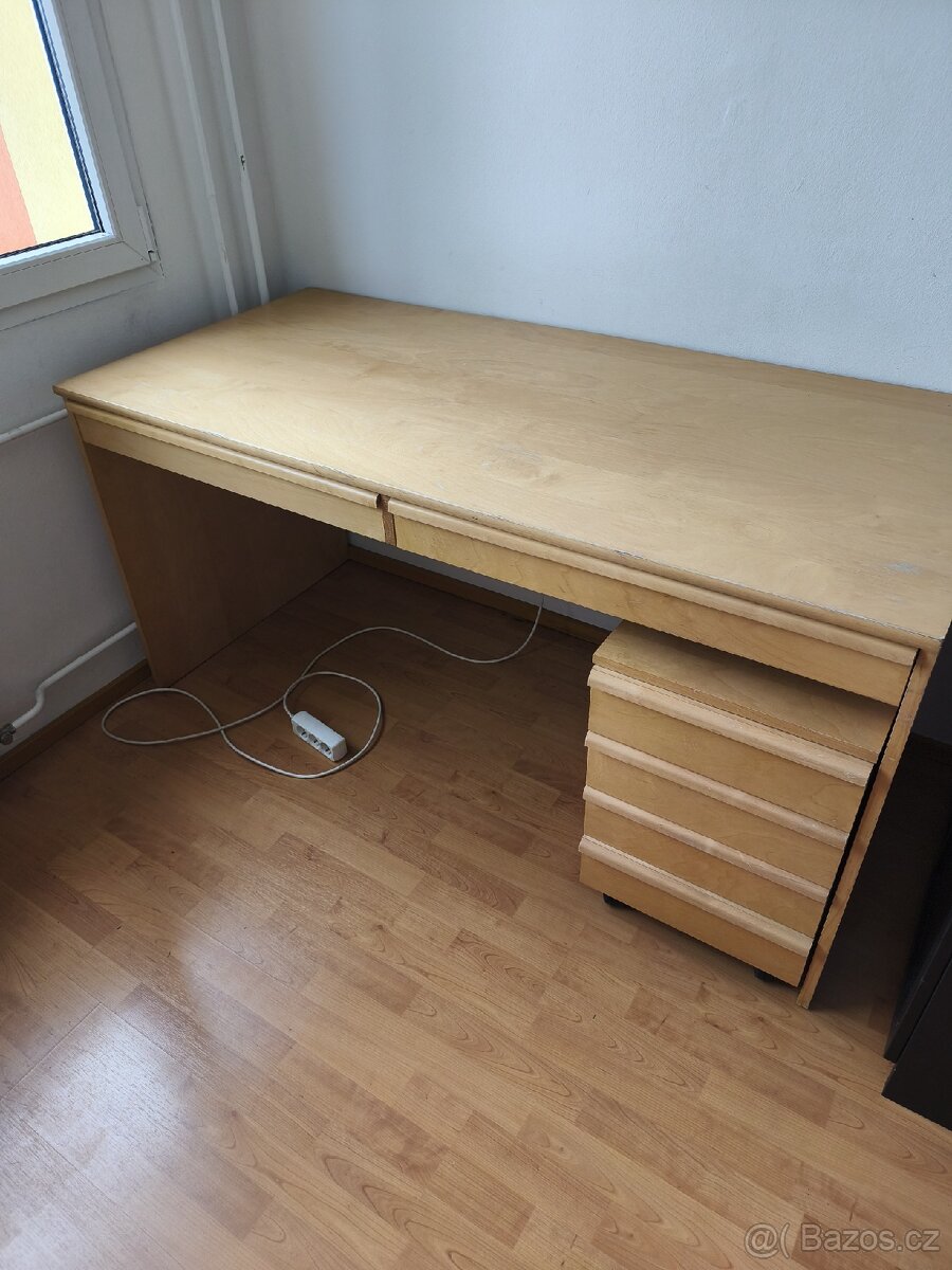 Zachovám stůl délka stolu 160cm, Hloubka 75 cm, Výška 78 cm Stůl má dva funkční šuplíky vidět na foto k tomu dávám šuplíkový kontejner na kolečkách. Při rychlém jednání možná dohoda o ceně .Stůl se nachází v Praze 8 v Čimicích