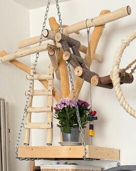 Strom pro papoušky plus hračky.