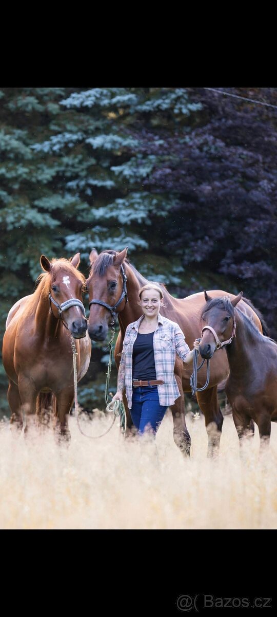 Dobrý den, hledám nový domov naší malé poničce Babybell. Kobylka bude mít 30.4 3. Narozeniny je ve fázi přípravy na obsedání - zatím pouze práce na ruce, sedlo už nesla. Velice kontaktní a učenlivá kobylka s dobrým skokovým potenciálem. Hledám pro ni zodpovědné páníčky budu si opravdu hodně vybírat kam půjde mám ji od jednoho roku. Výška v kohoutku cca 125cm ( ještě roste ). Není závislá na koních, kovář, veterinar bez problémů. Je očkovaná, odčervená, pravidelně strouhaná a bez zdravotních problémů. Nikdy jsem u ní nic neřešila. Kobyla je od jara do podzimu na pastvě v zimních měsících přes noc boxovaná. Krmena kvalitním musli a seno neomezeně. Na vyjížďkach nás na volno doprovází - přijde na zavolání. Představa o ceně 60 000 Kč