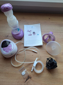 Dvoufázová elektrická odsávačka mateřského mléka. Vynikající pomoc už do porodnice. Má dvě funkce - stimulace a samotné odsávání. U obou funkcí se pak dá nastavit intenzita i časovač. Poté je třeba jen držet na prsu a druhou rukou si můžete třeba číst ;) Je sice použitá, ale na funkčnosti ji to nic neubralo, tak budu ráda, když poslouží dál :)