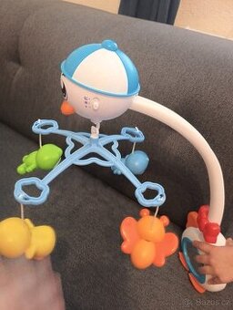 Prodám málo používaný dětský kolotoč nad postýlku na 3 tužkové baterie. Pomáhá také s rozvojem motoriky. Miminko se soustředí na zdroj zvuku, otáčí hlavičkou, natahuje se po otáčejících se zvířátkách, čímž posiluje své rozvíjející se svaly. Dítě se učí sledovat objekty v pohybu a zároveň také rozlišovat tvary a barvy. Na kolotoči je umístěno také malé zrcátko.