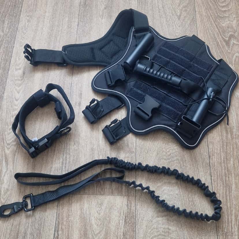 Prodám postroj velikost M. K postroji je obojek s vodítkem. Kupované na temu, bohužel velikost nesedí, jen odzkoušené. Obvod krku 48-66 cm Hrudník 52-76 cm