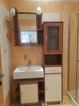 Prodám používaný, ale stále pěkný koupelnový nábytek. Jde o 6 ks, původní sestava měla pouze 5 ks, jednu závěsnou skříňku jsem si ještě dokupovala. Běžné opotřebení, ještě velmi hezky poslouží. Prodávám z důvodu rekonstrukce koupelny, na požádání ráda přeměřím. Je možné vzít i s umyvadlem (to je zdarma), ale je popraskané, viz foto. Topný žebřík ani světla nejsou součástí prodeje, pouze nábytek. Pouze osobní odběr Praha 4, neposílám.