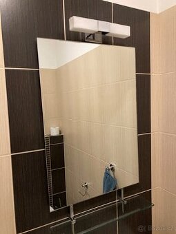 Prodam zrcadlo š. 50cm, v. 71cm se sklenenou polickou sirokou 11cm. Celkova vyska ca 80cm, myslim ze jde upravit posunem policky. Muzu pridat i svetlo viz obr. za 100kc. Jen osobni predani.