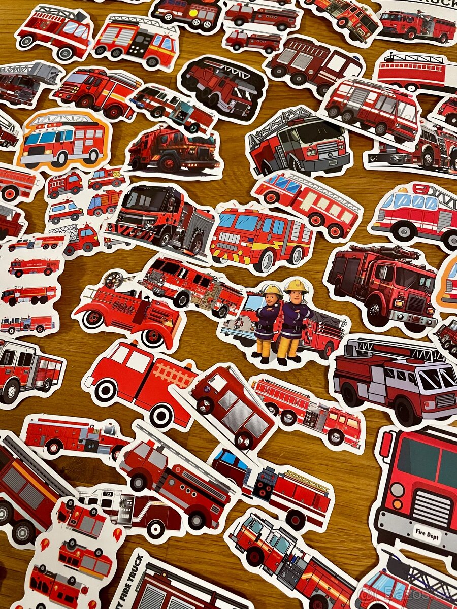 Prodám krásnou sadu samolepek s motivy hasičských aut a techniky. Různé typy požárních vozů, žebříky, cisterny i hasiči – ideální pro malé fanoušky záchranářů. Barevné a detailní provedení Pevný, kvalitní materiál Vhodné na sešity, láhve, notebook, kufr nebo jako dekorace Skvělé pro děti i jako malý dárek Rozměry: Viz foto s metrem