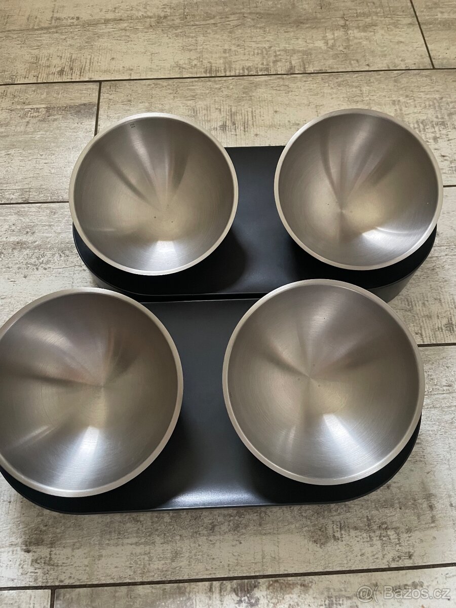 Cena: V textu. Volejte, pište, pokud máte zájem o polohovací misky z ušlechtilé oceli, jeden stojan + dvě misky. Mám dvoje stejné, cena za jedny 360, - Kč, za oboje 600,- Kč. Inzerát platný do smazání.