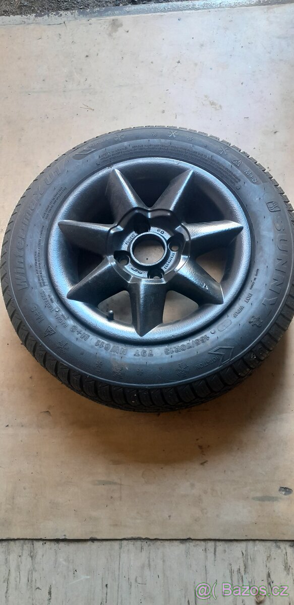 Prodám rezervu na vlek 4×100 165/70r13 nové pneu+alu komaxit cena 500kč