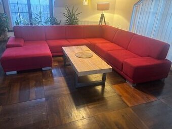 Velká sedací souprava. Skládá se ze tří dílů. Pohodlná, používaná cca 8 let. V dobrém stavu. Rozměry jsou na fotce. Původní cena 80tis.
