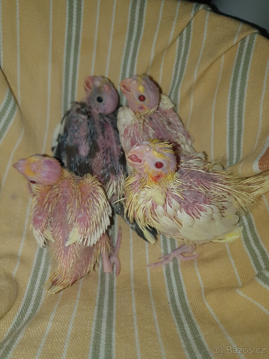 Mláďata stáří 2 měsíce k prodeji 4 kusy. Druh Austrálie Lutino korely.