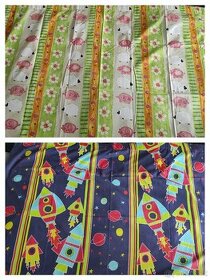 Latka s prasatky (100% bavlna, sirka cca 180cm, vyska cca 133cm, latka s raketami (48%bavlna, 52% polyester, sirka cca 160cm, vyska cca 135cm). Jedna se o zavesy nebo lze latku pouzit na ruzne tvoreni, polstarky apod. Cena vzdy za jednu z latek, mozno koupit samostatne. Osobni odber Praha Cerny Most, Mustek, Strasnice nebo zaslani zasilkovnou, balikovnou - platba predem.