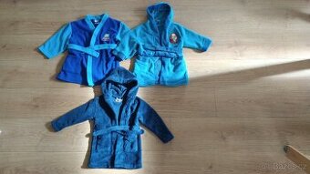 Tři dětské župany velikost 18-24 měsíců, ale vydrží určitě déle. Bořek stavitel, Mašinka Thomas. Možno koupit jednotlivě. Cena za kus 30,-