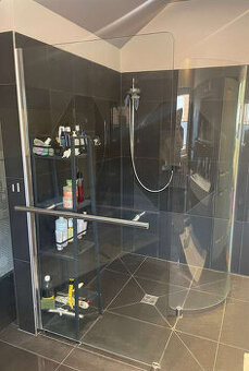 Prodám zánovní sprchovou zástěnu půlkulatá - šnek nerezové madlo 90cm lze montovat zevnitř jako madlo na přichycení a vně jako držák na ručníky.Pův.cena 1650€. Rozměry:rovná zástěna 100 x 200 x 1cm půlkulatá 80 -113cm x 200 x 1cm.