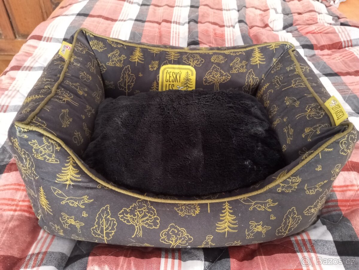 Krásný pelech, kupovaný nedávno nový, používaný chvíli, nedávno praný, budu kupovat větší, velikost S pro menší plemena psů, vnější rozměry 65 x 45 cm, rantl cca 15 cm, ložná plocha tedy cca 35 x 30 cm.