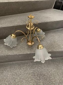 Prodám lustr trojramenný, zlatý kov a skleněná stínidla. Osobní odběr Frenštát pod Radhoštěm. Po dohodě je možný odběr Praha (120 00) nebo Karviná (734 01)