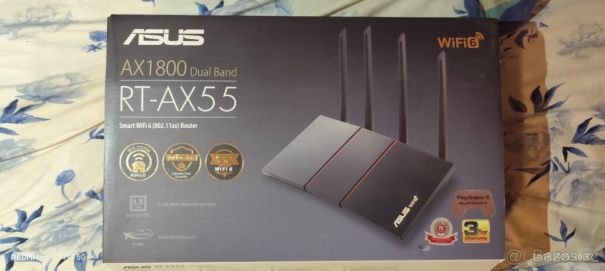 Prodám wifi 6 router Asus RT-AX55 v perfektním stavu cena 1200+poštovné 90 při platbě předem na účet přes Balikovnu na odběrné místo nebo 150 dobirka,poštovné předem na účet ,dobírkova částka bude 1200.Odesilam ihned Router neumi ADSL,VDSL,DSL typ internetu,pouze pres kabelové připojeni Ethernet kabelem.České menu,kompletni baleni s Ethernetovym kabelem