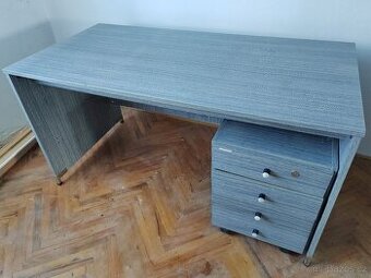 Rozměry: d 146 cm, š. 73cm, v. 76 cm. Pojízdný kontejner - výsuvné šuplíky - nutné popravit - viz foto. Rozměry: d. 45 cm, h. 60 cm, v.58 cm.