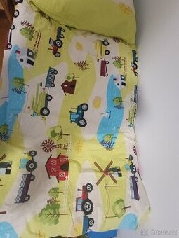 Kvalitní bavlněné povlečení (bavlna deluxe) rozbalené, bez vad. Zipy funkční. U nás nevyužito Dětské povlečení Matějovský EKOFARMA, traktory na farmě na světle zelené, bavlna hladká, 140x200cm + 70x 90cm Dětské bavlněné povlečení z kolekce Matějovský se vzorem traktorů, stodol a jezírek na ekofarmě na světle zeleném podkladu. Ložní souprava je vyrobena ze 100% bavlny a obsahuje jeden povlak na přikrývku 140 x 200 cm a jeden povlak na polštář 70 x 90 cm. Zapínání na zip.