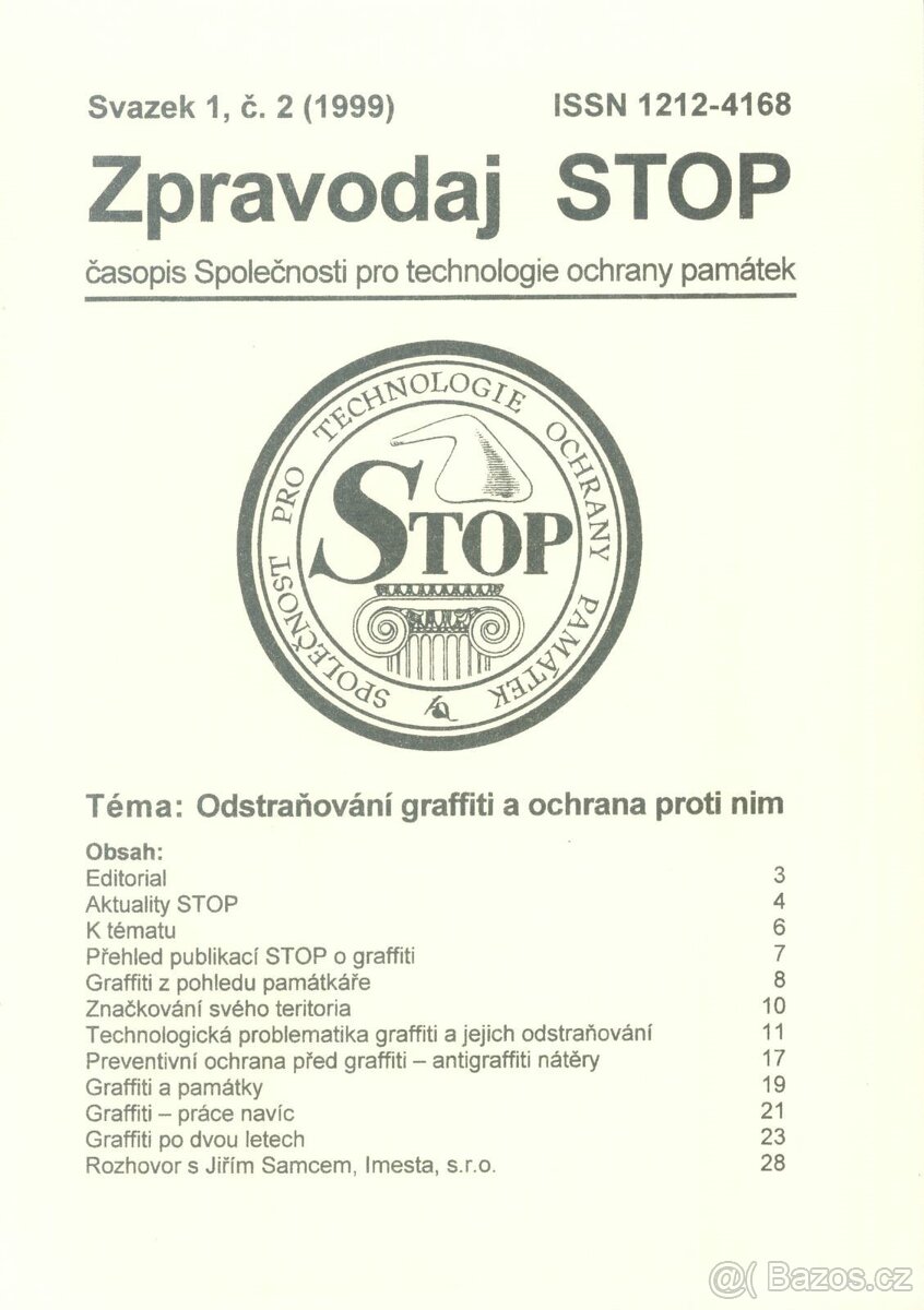 Zpravodaj STOP 1999-2008, časopis Společnosti pro technologie ochrany památek. Cena publikace 100,- Kč/ks. Prodám i jednotlivě. Platba předem na bankovní účet, zaslání prostřednictvím Balíkovny.cz, poštovné a balné 75,-Kč.