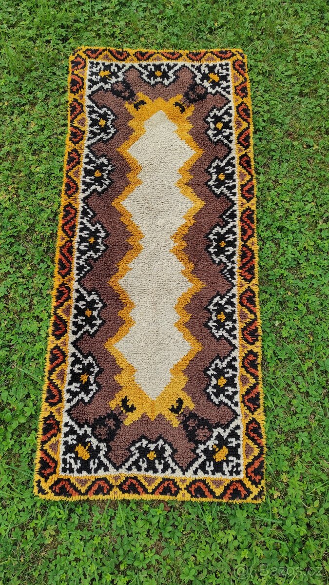 Cena: V textu. Prodám tkané/háčkované hřejivé koberce TAPIKO z pravé vlny. Ruční práce. Trvanlivá metoda, smyčkováním do kanavy (dnes stále populární , obdoba tzv. Locker Hooking). U všech 3 ks vlastní vzor. Viz foto. Koberce ani po 35 letech vlastně nejeví žádné známky opotřebení. Přežily už několik generací běžně používaných v domácnosti. Velmi trvanlivé, výborně odizolují chlad od podlahy. Rozměry 2ks 60x145cm, á 1.600,- Kč a 1ks 60x285cm běhoun, 3.100,-. Lze prát i na 30 st. v pračce. Vejde se doma do 6kg pračky. Vyzkoušeno bez újmy. Příjemný vysoký vlas. Plzeň. Tel. 777836177