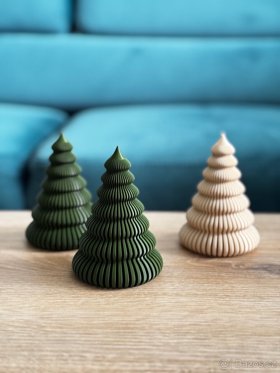 Nabízím 3D tištěné vánoční dekorace viz přiložené foto. V případě dotazů mě neváhejte kontaktovat. 😊 Rád je zodpovím. Je možné udělat libovolné barvy. Stromeček vlnkový - výška 10cm průměr 7cm - 50kč (lze vložit LED svíčka) Stromeček vlnkový - výška 15cm průměr 10,5cm - 85kč (lze vložit LED svíčka) Stromeček vlnkový - výška 20cm průměr 14cm - 150kč (lze vložit LED svíčka) Stromeček koule - výška 12cm průměr 7,5cm - 95kč (lze vložit LED svíčka) Andílek s křídly - výška 8,5cm průměr 3,5cm - 35kč Andílek s křídly - výška 10cm průměr 4,2cm - 45kč Zvoneček - výška 5cm průměr 5cm - 25kč Zvoneček - výška 7cm průměr 7cm - 40kč Jmenovka s baňkou - průměr 7cm - 15kč (jméno a barva na přání) Baňka - výška 11cm průměr 4cm - 35kč Sněhulák - 55kč Pletený sněhulák - na LED svíčku - 65kč