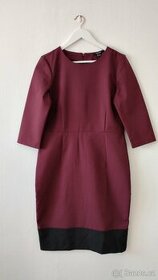 Prodám zcela nové šaty značky Esmara, opatřené ještě visačkou, vel. 40/42. Šaty mají vínovou barvu s černým lemem na sukni, vzadu rozparek. Materiál 55% bavlna, 42% polyester, 5% elastan. Praní na 30 stupňů. Rozměry: rukáv 44cm, pas 41,5cm, délka 99cm. Možnost osobního předání v Praze na stanici Hradčanská, případně v Novém Městě na Moravě. Posílám přes Českou poštu, Zásilkovnu i PPL.