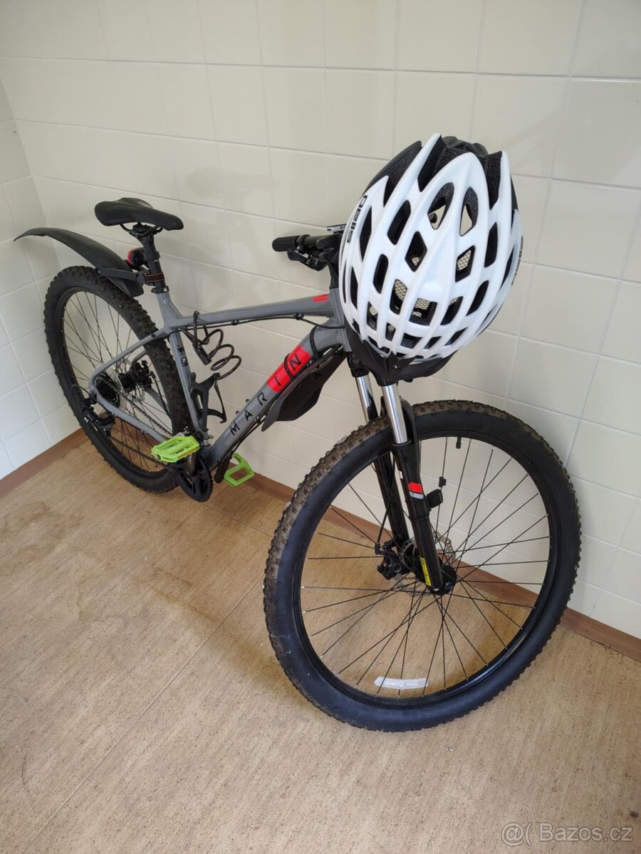 Prodám Horské kolo Marin Bolinas Ridge. vel. rámu 29", vidlice se zdvihem 100mm, nosnost 120kg Prodám tak jako na fotce se vším co k němu bylo dokoupeno, t.j blatníky, přední zadní světlo, přilba, držák na pití + láhev, zámek.