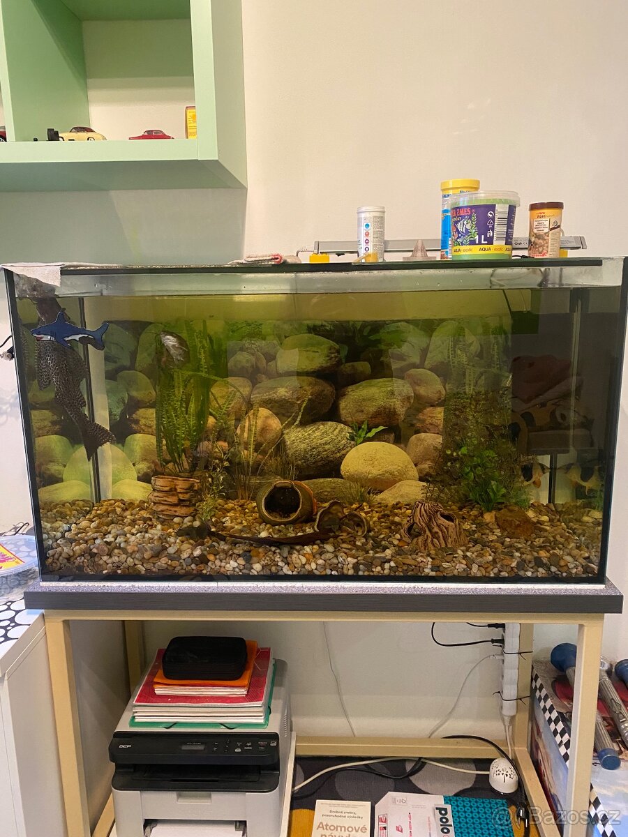 Prodám akvárium i s rybami tak jak na foto délka.rozměr d110 š45 v62cm