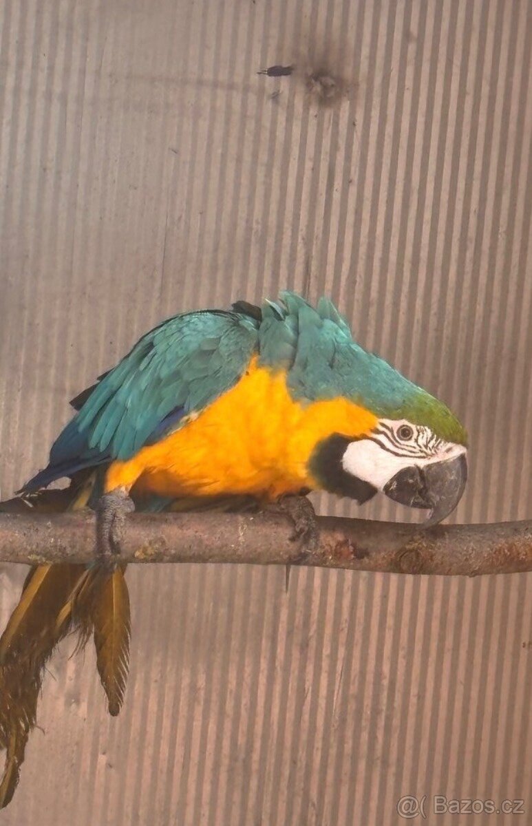 predám samca ary araruny rok 2023, do chovu, odchov pod rodičmi, pekný veľký kus, rozpráva, lieta 100% stav
