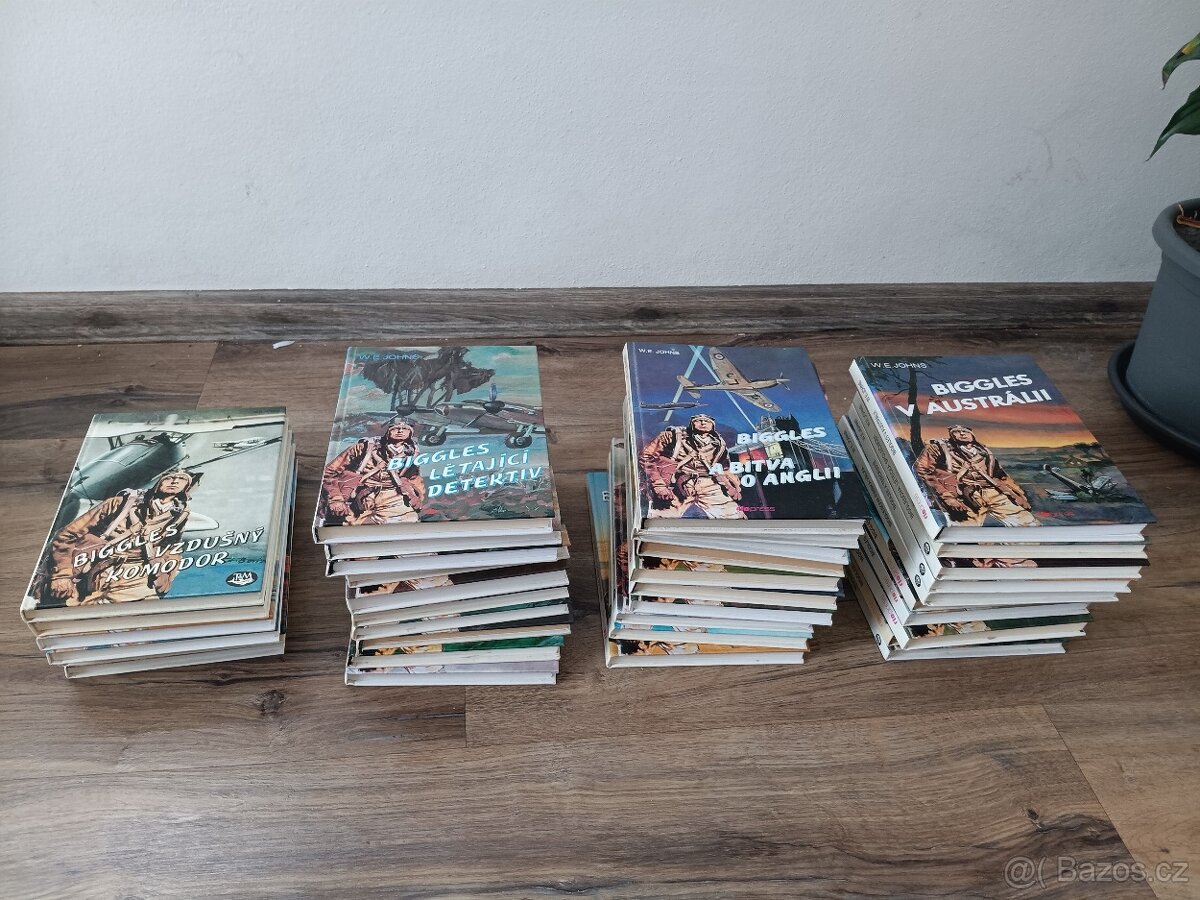 Prodám celkem 36 knih spisovatele W.E Johnse o pilotovi BIGGLES.Jednou čtené. Cena za vše. Neposílám.