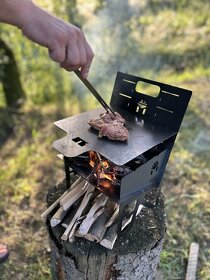 Prodám rozkládací cestovní gril velikosti papíru A4 a váhy 4,5 kg. buď černý plech 2 mm za 1990,- nebo nerez 2mm za 3487,- plně stravitelný jak rošty tak jehlice na špízy s možnosti ohniště , určeno pro jakékoli cestování. Vše naše výroba.