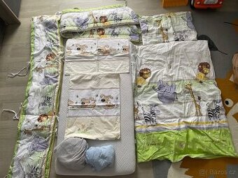 Prodam set do detske postylky. Perina,polstarek,matrace,2x povleceni,2x prosteradlo,mantinel do 1/2 postylky,mantinel po cely postylce (jen na nekterych mistech je potreba nasit snurka na uchyceni). Cena 300kc. Osobni predani- Volary.