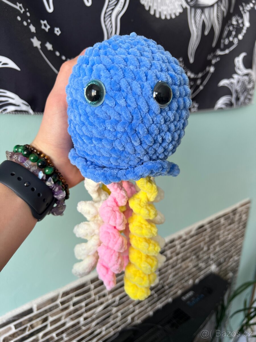 Ručně háčkovaná medúza z hebké žinylky. Délka: 26 cm