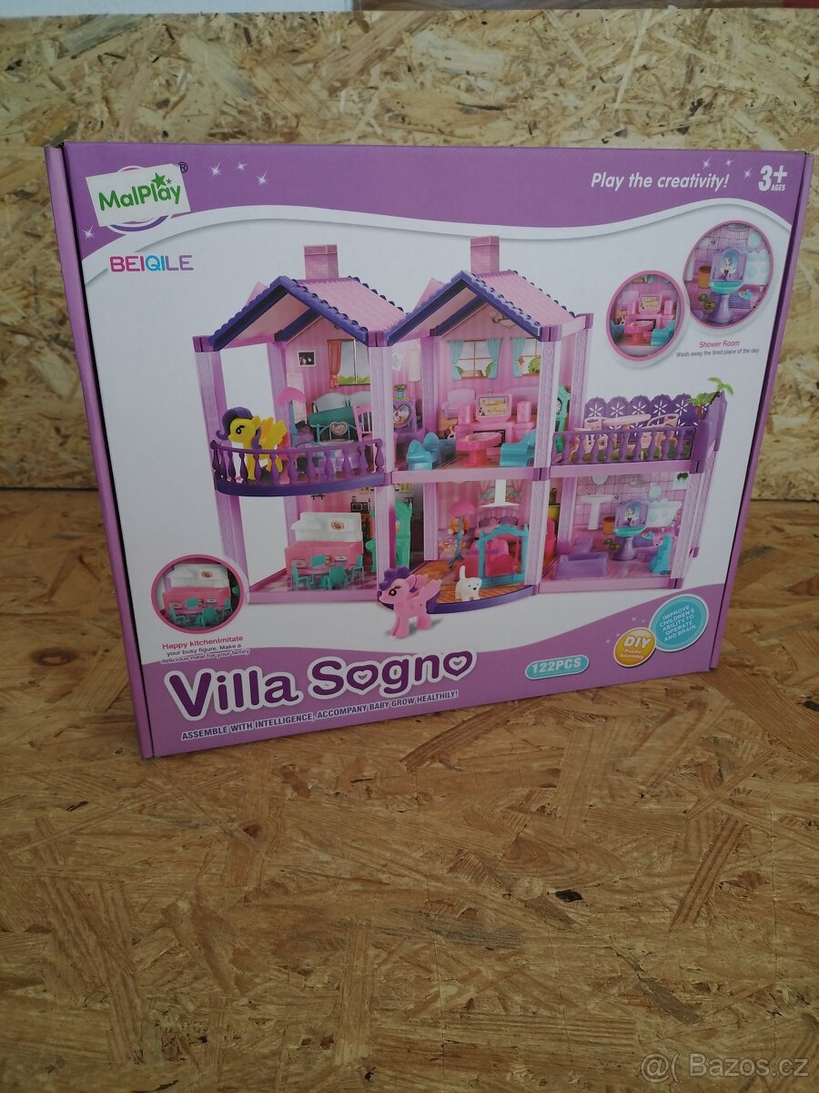 Parametry: Rozměry balení: 38 x 9 x 32 Dům: 58,5 cm dlouhý x 22,5 cm široký x 38,5 cm vysoký (ke konci komína) Rozměry místnosti: kuchyň: délka 18 x šířka 14 x výška 15 cm dětský pokoj v přízemí: délka 18 x šířka 21 cm x výška 15 terasa v prvním patře: délka 18 cm x šířka 14 cm balkon v prvním patře: délka 17 x šířka 6 cm Obsah balení: 2 poníci růžová: délka 8,5 cm x šířka 3 cm x výška 10 cm oranžová, D 6,5 cm x Š 2,5 x V 7,5 cm pes: délka 5 cm x šířka 2,5 cm výška palmy 9 cm nábytek: ozvučení s tv kuchyň s vybavením 3 stoly 9 židlí hruď 2 toaletní stolky brouzdaliště organizér s madly do koupelny záchodové prkénko dřez krb koupel houpačka 2 stojací lampy: 9,5 cm na výšku x 3,5 cm na šířku 2 postele: s rámem: šířka 5,5 x délka 8,5 / ložnice: délka 7 cm x šířka 5,5 cm křeslo pohovka klávesnice Stojící hodiny