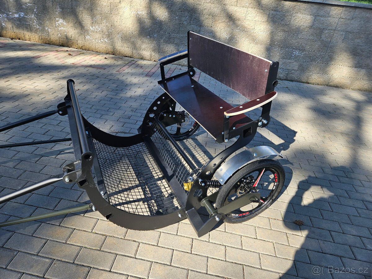 Pro velký zájem jsme upravili starší model sulky. Nyní nabízíme novou sulku za poníka se stavitelnýma ojkama, odbruženým podvozkem s nezávisle zavěšenými koly pro maximální pohodlí na nerovných "cestách". Sulka je vybavená přípravou pro kapalinové kotoučové brzdy za příplatek 3800Kč. Celý podvozek je zavěšený v silenblocích tím nic neklepe a nevrže. Užijete si maximální pohodlí a ticho. Ojky jsou nyní stavitelné jak vodorovně na šířku poníka, tak na výšku, optimální výška poníka 110cm. Polohovatelné sedlo s opěrátky na ruce.