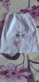 Dětská čepice bila s obrázkem kočka v dobrém stavu.