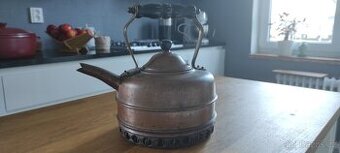 Prodám starožitnou secesní měděnou rychlovarnou konvici značenou SIMPLEX. Konvice SIMPLEX se vyráběly ručně od roku 1903 v Anglii. Konvice nečištěna, ale ve velmi pěkném zachovalém stavu, nepoškozená. Ponechal jsem v patině, ale je možno vyčistit do podobného vzhledu jako na foto. Vyjímečný téměř nesehnatelný antik starožitný kus. Možno zaslat nebo vyzvednutí osobně v Pardubicích nebo v Letohradu nebo mezi Letohradem a Pardubicemi, také možno i jinde, cestuji. tag: Simplex, měď, konvice, retro, solitér, secese, solid copper, antik, antique, vintage