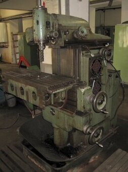 Název stroje: Frézka nástrojářská Katalogové číslo: 8784 Typ, parametry: ALG 200 Výrobce: PRVOMAJSKA Rok výroby: 1965 Popis: kužel vřetena ISO 40, osa X 580mm, osa Y 295mm, osa Z 360mm, plocha stolu 400x900mm, šířka T drážek 12H7mm, vzdálenost mezi T drážkami 45mm, plynulé rychlostní rozpětí 37-1900ot/min., motor vřetena 4kW, počet drážek 8, hmotnost stroje 1500kg