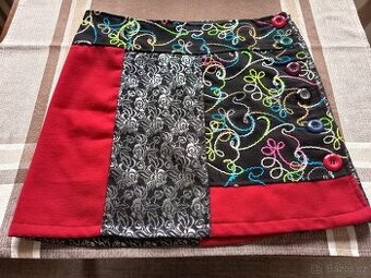 Teplejší sukně ve stylu Desigual. Pas 92, boky 108, délka 46. Nošená, velmi dobrý stav. Materiál uveden na fotce.
