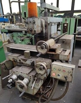 Název stroje: Frézka konzolová Katalogové číslo: 2941 Typ, parametry: FU 25 Výrobce: CUGIR Rok výroby: 1982 Popis: Délka pracovní plochy stolu 1000mm Šířka pracovní plochy stolu 320mm Upínací rozměr stolu 320x1000mm Podélný posuv (X) 720mm Svislý posuv (Z) 420mm Příčný posuv (Y) 360mm Výkon hlavního elektromotoru 5.5kW Hmotnost stroje 2310kg