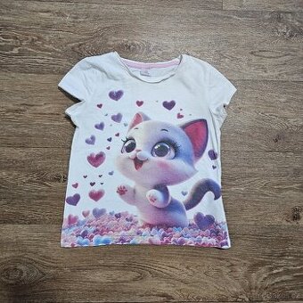 Dívčí triko s kočičkou vel. 128